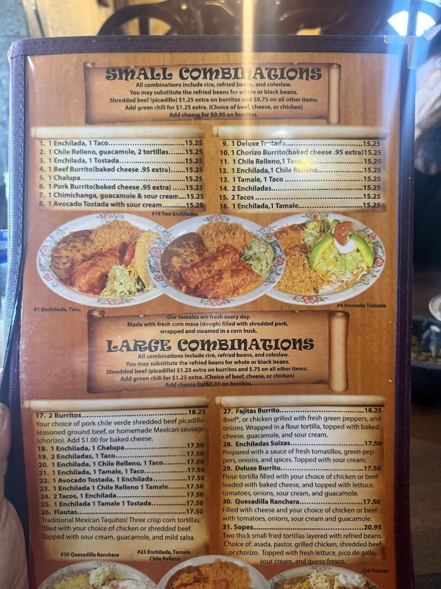 The menu at Mi Mexico offers a straightforward, comforting selection of classic Mexican dishes served in a lively, colorful setting. You’ll find traditional favorites like enchiladas in various fillings—from cheese to chicken and beef—alongside unique options such as seafood enchiladas with creamy Monterey Jack cheese sauce. The menu also features authentic side dishes like tamales made with fresh corn masa and chile rellenos prepared in traditional styles.